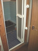 祖母の動線において、要所に手摺を設置し、浴室ドアから浴室折戸に変更し、出入がスムーズに行なえるように改修した。