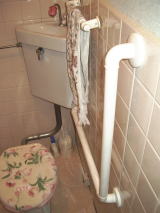 82歳の祖母が、背骨圧迫骨折のため、足腰が弱く歩行が非常に不安定。特に介護はしていないが、浴室やトイレなどに支持物がないため、移動が非常に困難であった。転倒を避けるために、手摺を各所に付けて欲しいとの要望。