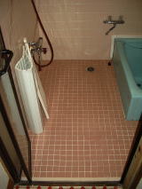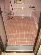 ユニットバスではなく,在来タイル貼りの浴室を希望されたため,浴槽のまたぎの小さく、腰をかけて入浴できるバリアフリー型の浴槽を設置。洗面所との段差もなくして,グレーチングを設置した。換気扇から浴室暖房乾燥機に取替え,冬もあったか。防水下地からの全面改修となった。
