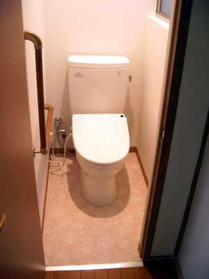 在来和式のため,床下もかなり腐朽しており,シロアリにも喰われていました。床組みから大きく改修しました。洋式トイレでウォシュレットにオート洗浄も装備。快適なトイレ空間に早変割り。