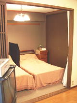 洋室とリビングの間仕切を撤去し、リビングスペーズを広くし、寝室との仕切も格子戸にした。クロスにも珪藻土壁紙を使用し、質感にもこだわった。